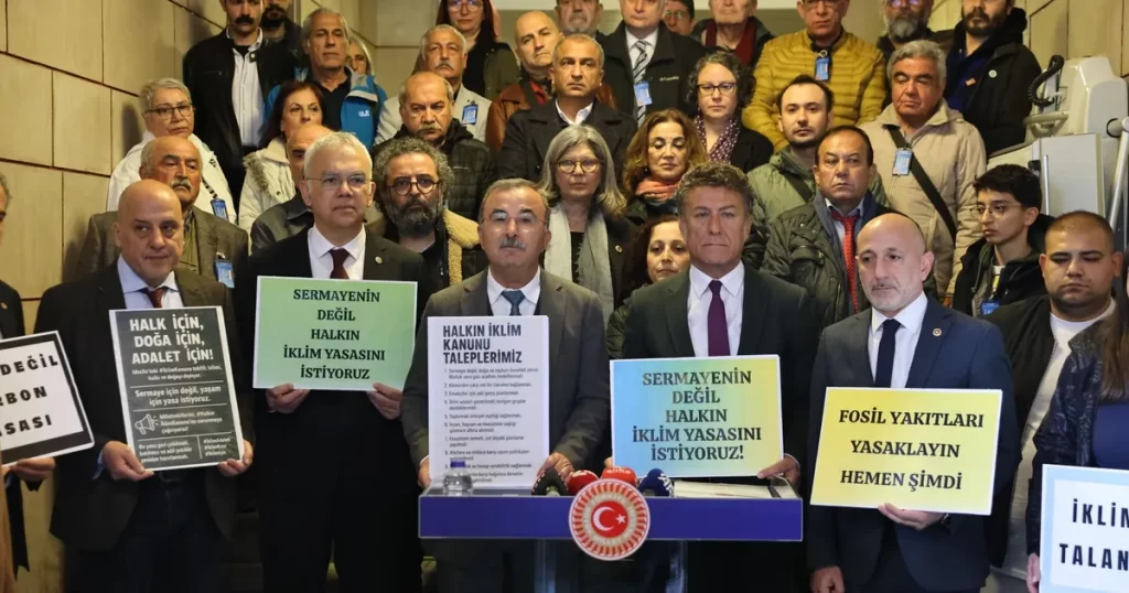 ANKARA (İGFA) – CHP Bursa Milletvekili Orhan Sarıbal, CHP Bursa Milletvekili Kayıhan Pala, CHP Kahramanmaraş Milletvekili Ali Öztunç, DEM Parti İzmir Milletvekilleri Burcugül Çubuk ve İbrahim Akın, EMEP İstanbul Milletvekili İskender Bayhan, TİP İstanbul Milletvekili Ahmet Şık, İklim Adaleti Koalisyonu ile birlikte TBMM’de düzenlediği ortak basın toplantısında Meclis’te görüşmeleri süren İklim Kanunu teklifine tepki gösterdi.