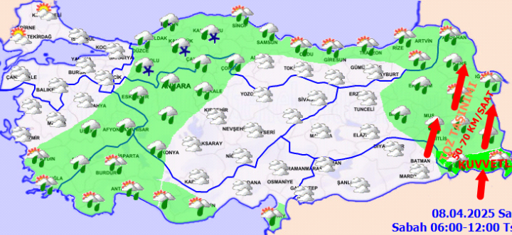 ANKARA (İGFA) – Meteoroloji Genel Müdürlüğü, 8 Nisan Salı gününe ilişkin hava tahmin raporunu yayımladı. Buna göre...