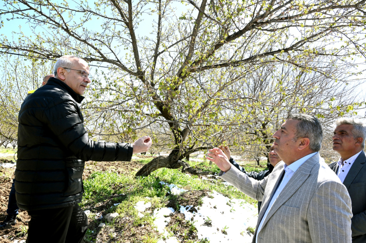 Kayısı bahçelerinde incelemelerde bulunan Malatya Ticaret Borsası Başkanı Ramazan Özcan, yaşanan kar yağışıyla birlikte Malatya’nın tarımsal üretimde büyük bir afetle karşı karşıya kaldığını söyledi. Sabahın erken saatlerinde Malatya Büyükşehir Belediye Başkanımızla beraber çok yoğun bir telefon trafiğiyle görüşmeler gerçekleştirdikten sonra sahada incelemelere başladık” dedi.