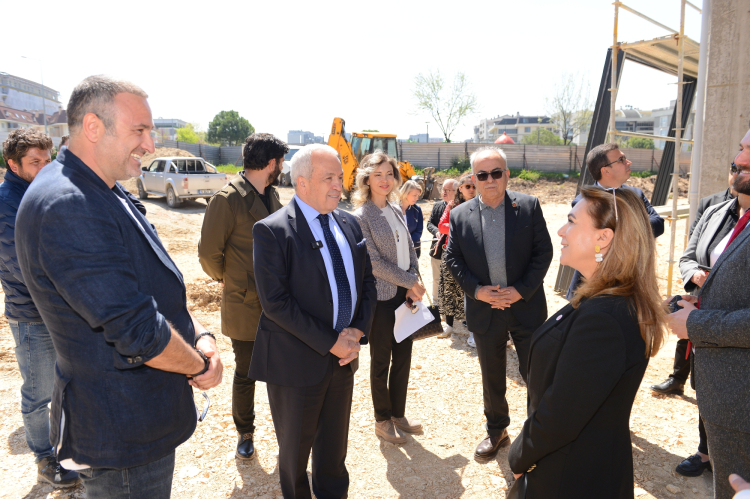 Yapımı devam eden pazar alanını ziyaret eden Nilüfer Belediye Başkanı Şadi Özdemir, Belediye Başkan Yardımcıları ve Balat Mahalle Muhtarı Serpil Özuyguz, inşaat çalışmalarını yerinde inceledi.