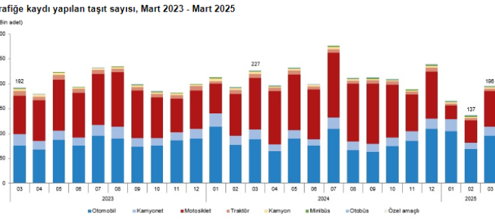 ANKARA (İGFA) – Türkiye İstatistik Kurumu (TÜİK), Mart ayına ait motorlu kara taşıtları verilerini açıkladı. Mart ayında trafiğe...