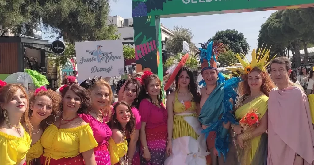 Toprak , zaman ve tat temasına uygun olarak derneğin özgün ve Çeşme’ye özel tasarımları arasında zaman konusunda nesli tükenmekte olan İzmir yalı çapkını, tat konusunda Ege’nin mandalini ve toprak konusunda doğa tanrısı Demeter kostümleri yer aldı. Dernek mayıs ayında doğanın uyanışını kutlayacak olan İzmir romanlarını da unutmayarak rengarenk roman kostümleriyle kortejin en renkli grubu oldular. İzmir Aşkına Derneği Genel Sekreteri Fadime Bilir, bu ay sonu galası yapılacak İzmir’in ilk müzikal komedisi olan ve izleyiciyi kahkahaya boğacağına inandıkları “İzmir’in Rüyası” gösterilerini yaz aylarında Çeşmelilerle buluşturmayı planladıklarını söyledi.