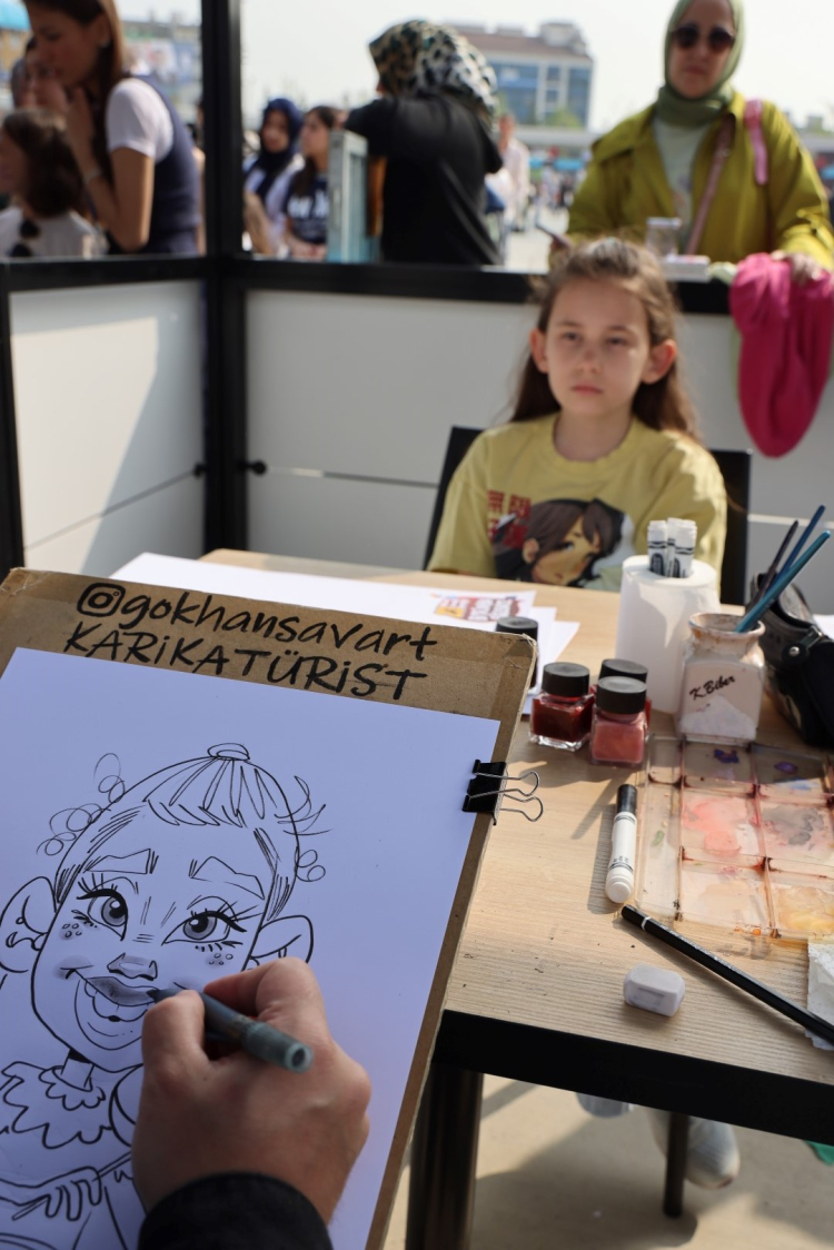 Kocaeli Büyükşehir Belediyesi, renkli atölyeleriyle çocuklara unutulmaz bir 23 Nisan şenliği sunuyor. İzmit Milli İrade Meydanı’nda kurulan karikatür atölyesi, minik ziyaretçilerin favori duraklarından biri oldu. Karikatüristler Gökhan Sav ve Feridun Yüksel’in çizimleri, çocukların kendi yüzlerini abartılı ve eğlenceli bir biçimde görmelerini sağladı. Minikler ilk anda karikatürü bir resim ya da fotoğraf gibi algılasa da, çizimleri görünce hem şaşırdı hem güldü. 40 yıllık çizer Feridun Yüksel, çocukların bu deneyime alışık olmadığını vurgulayarak, “Karikatür bir abartı sanatı. Onlar kendilerini bu kadar farklı görünce şaşırıyorlar ama sonunda yüzleri hep gülümsüyor” dedi.
