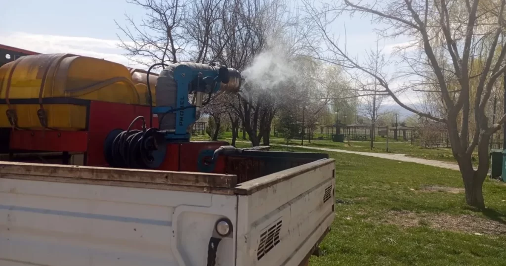 ERZİNCAN (İGFA) – Havaların ısınması ile birlikte Belediye mücavir alanları içerisinde başlatılan larva ilaçlaması devam ediyor. Etkin bir şekilde yapılan ilaçlama çalışmaları ile vatandaşların rahat ve sağlıklı bir yaz geçirmesi sağlanıyor.