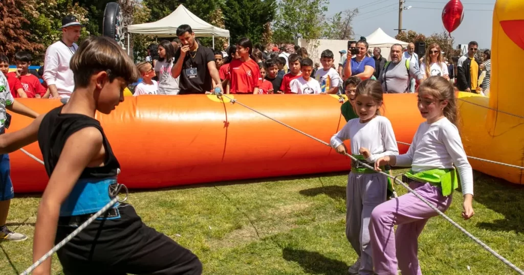 İZMİR (İGFA) – Çocuklar şişme kaydıraklarda, dev maskotlarla, palyaçolarla doyasıya eğlendi. 6 Şişme Oyun Parkuru (Kaydırak, Kuleli Zıpzıp, Canlı Langırt, Dart, Gladyatör, Sumo), Karikatür Çizim atölyesi, Hacivat – Karagöz Kukla Yapım Atölyesi, Resim Atölyesi, Bileklik Yapım Atölyesi, Atatürk Baskılı Tişört Yapım Atölyesi, Tahta Oyuncak Atölyesi, Güzelbahçe Belediyesi Halk Oyunları Çocuk Ekibi, Palyaçolar & Maskotlar, Kostümlü Animatörler, Sosis Balon Dağıtımı, Sihirbaz Sahne Gösterisi, Pamuk Şekeri İkramı, Patlamış Mısır İkramı ve Yüz Boyama etkinlikleri ile çocuklar gönüllerince eğlendi.