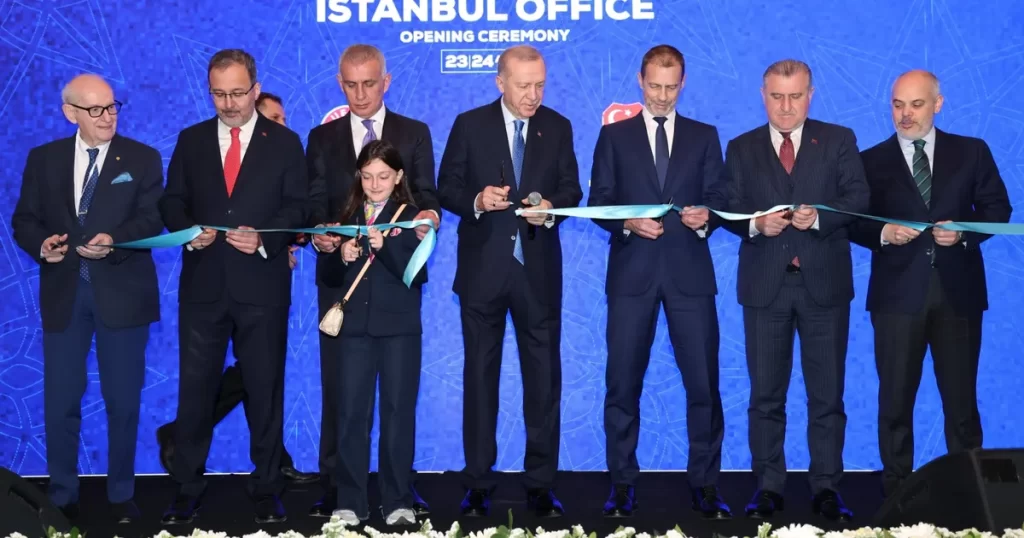 İSTANBUL (İGFA) – Cumhurbaşkanı Recep Tayyip Erdoğan, Avrupa Futbol Federasyonları Birliği’nin (UEFA) İstanbul’da açılan temsilciliğinin açılış töreninde yaptığı konuşmada, bu adımın Türk futbolu için hayırlı olmasını diledi. İstanbul’un asırlardır farklı inançları kucaklayan yapısıyla çok kültürlü kimliğini daha da güçlendireceğine inandığını vurguladı.