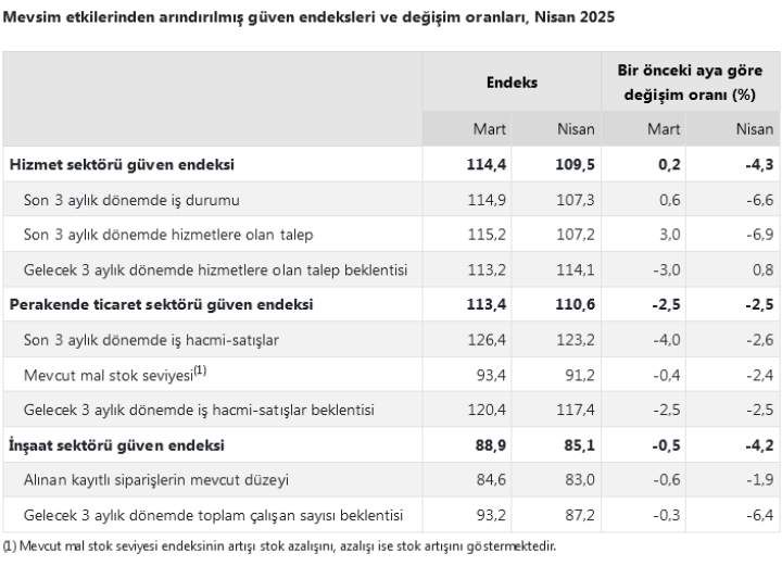 ANKARA (İGFA) – Türkiye İstatistik Kurumu (TÜİK), Nisan 2025’e ilişkin hizmet, perakende ticaret ve inşaat sektörü güven...