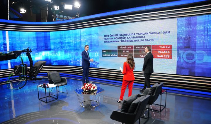 ANKARA (İGFA) – Çevre, Şehircilik ve İklim Değişikliği Bakanı Murat Kurum, tv100 Genel Yayın Yönetmeni Deniz Gürel ve...