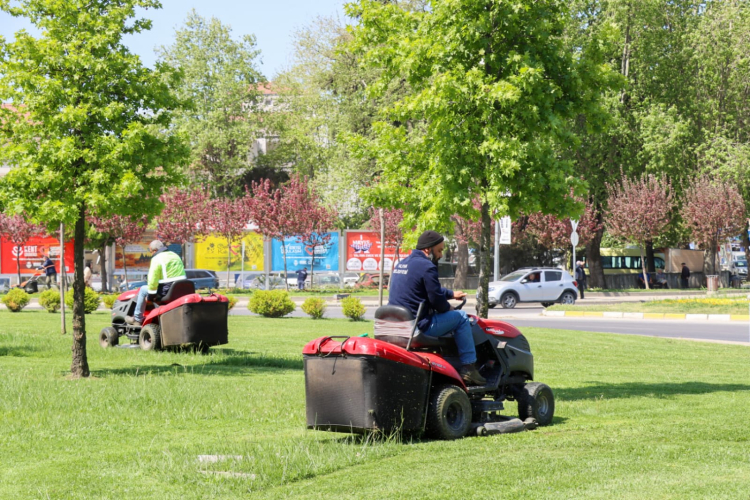 Ekipler, Tonami Meydanı’ndaki çimlerin sağlıklı ve düzenli bir görünüme kavuşması için yoğun mesai harcıyor. Peyzaj çalışmalarının kent genelinde farklı bölgelerde de devam edeceği belirtildi.