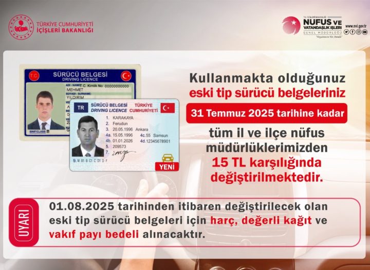 ANKARA (İGFA) – 2016 yılı öncesi düzenlenen eski tip sürücü belgelerinin geçerlilik süresi 31 Temmuz 2025’te doluyor....