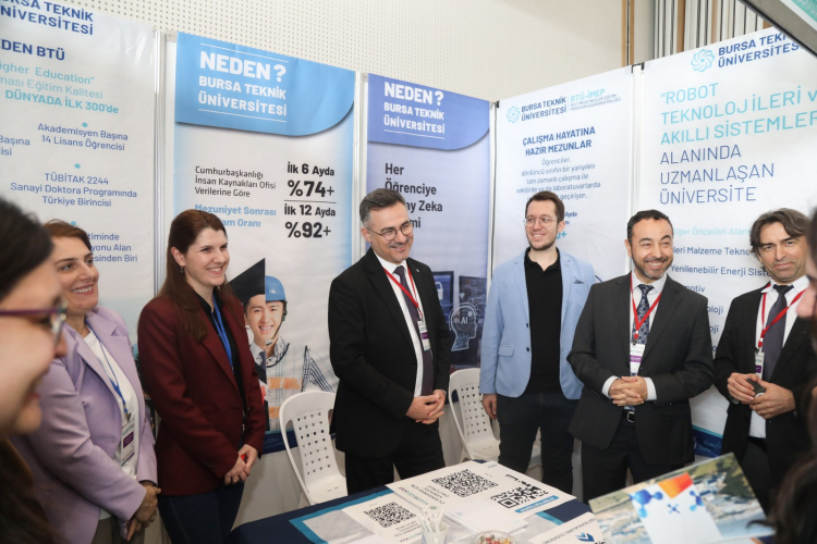 Kocaeli Kongre Merkezi’nde 28-29 Nisan tarihlerinde gerçekleştirilen fuarın açılışına katılan BTÜ Rektörü Prof. Dr. Naci Çağlar, öğrencilerin ve işverenlerin yoğun ilgi gösterdiği BTÜ standını ziyaret etti. Rektör Çağlar, BTÜ’nün kariyer planlamasına verdiği önemi vurgulayarak, “Öğrencilerimizin kariyer gelişimini birinci sınıftan itibaren destekliyoruz. Mezun ve sektör mentörleriyle öğrencilerimize yol gösteriyor, İşletmede Mesleki Eğitim Programı ile sektöre hazır bireyler yetiştiriyoruz. Bu yaklaşımımızın ürünü olan ‘BTÜ Kariyer Modeli’ Kültür ve Turizm Bakanlığı Telif Hakları Genel Müdürlüğü tarafından tescillendi. Mezunlarımızın ilk yıl istihdam oranı yüzde 90, işveren memnuniyet oranı ise yüzde 92,5 düzeyinde olması kariyer ” dedi.