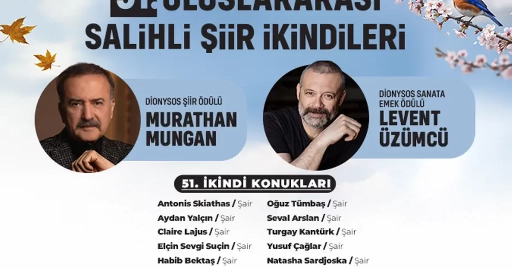 Yılda iki kez, ilkbahar ve sonbahar dönemlerinde düzenlenen etkinlik, 3 Mayıs 2025 Cumartesi günü saat 14.00’te, Salihli Belediyesi Zafer Keskiner Tiyatro Salonu’nda başlayacak. Şair ve Yazar Tuğrul Keskin editörlüğünde düzenlenen Salihli Şiir İkindileri’nin bu yılki programında, edebiyat ve sanat dünyasından önemli isimler yer alacak. Bu yıl etkinliğe şairler Antonis Skiathas, Aydan Yalçın, Claire Lajus, Elçin Sevgi Suçin, Habib Bektaş, Hıdır Işık, Natasha Sardjoska, Oğuz Tümbaş, Seval Arslan, Turgay Kantürk ve Yusuf Çağlar katılacak. Ayrıca, etkinlik kapsamında, ressam Reyhan Abacıoğlu’nun resim sergisi sanatseverlerle buluşacak, müzisyen Haluk Çetin ise “Şiir İçi Şarkılar” temalı özel bir konser verecek.