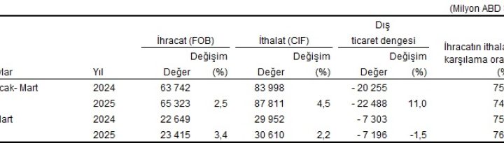 ANKARA (İGFA) – TÜİK, Mart ayına ilişkin Dış Ticaret İstatistiklerini yayımladı. Buna göre TÜİK ile Ticaret Bakanlığı...