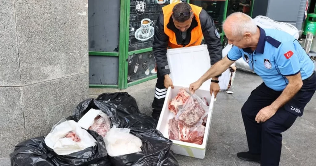 ANTALYA (İGFA) – Antalya Büyükşehir Belediyesi Zabıta ekipleri, insan sağlığını tehdit eden gıda taşımacılığına karşı denetimlerine devam ediyor. Antalya Şehirlerarası Otobüs Terminali’nde Büyükşehir zabıta ekipleri ve güvenlik görevlileri denetimler sırasında bir otobüs firmasından çöp poşetleriyle şüpheli malzeme taşındığını fark etti. Poşetleri kontrol eden ekipler, sağlıksız koşullarda taşınan 9 adet çöp poşetinde yaklaşık 300 kilogram et buldu.