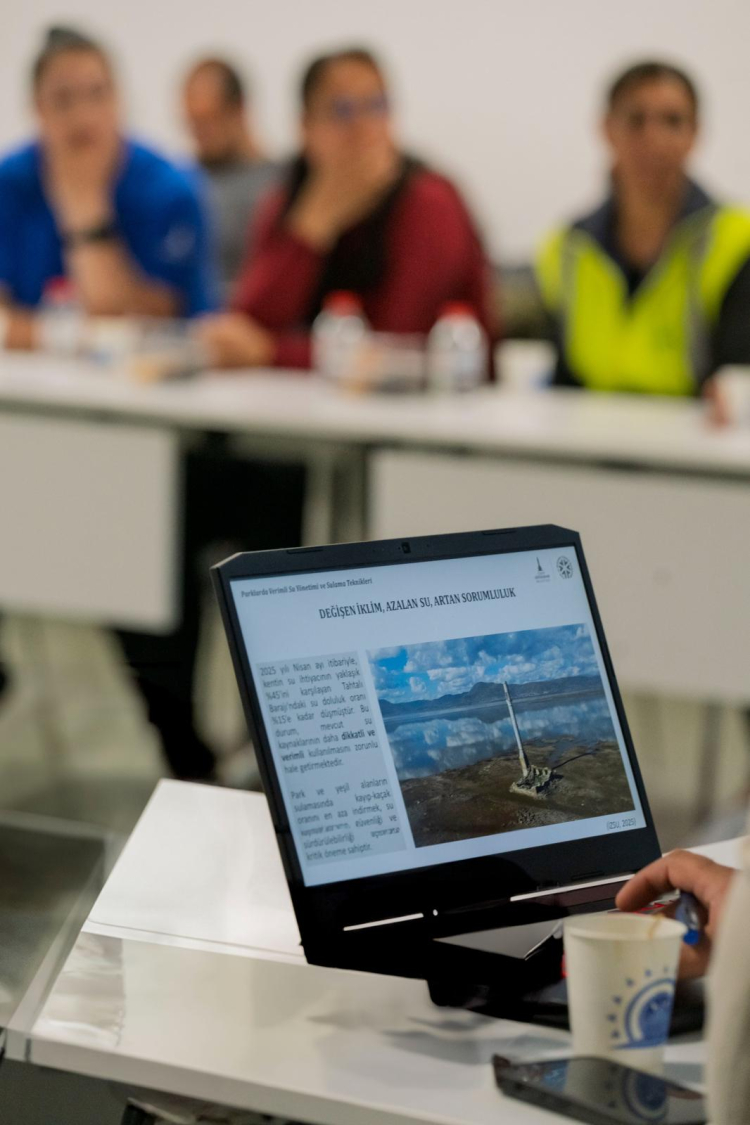 İzmir Büyükşehir Belediyesi’nin su tüketiminin yüzde 80’ini oluşturan parkların bakımında su kaybının önüne geçilmesi için düzenlenen eğitimde personele modern sulama tekniklerinden su kaçaklarını önlemeye kadar pek çok alanda bilgi verildi.
