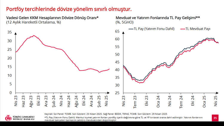 Mart ayındaki finansal piyasalardaki dalgalanmalara proaktif tedbirlerle müdahale edildiğini belirten Karahan, “Sıkı para politikası kararlılıkla sürdürülecek, dezenflasyon devam edecek. 2025’te cari açığın milli gelire oranı, 2024’ten yüksek olsa da uzun vadeli ortalamaların altında kalacak. Tüketici fiyatlarındaki maliyet baskıları hafifliyor, bu durum sektör geneline yayılıyor. Enflasyon beklentileri, dezenflasyon hedefinin üzerinde seyretse de likidite koşulları yakından izleniyor ve etkili yönetim araçları kullanılıyor” diye konuştu.
