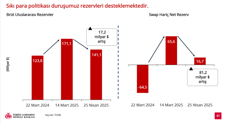 Mart ayındaki finansal piyasalardaki dalgalanmalara proaktif tedbirlerle müdahale edildiğini belirten Karahan, “Sıkı para politikası kararlılıkla sürdürülecek, dezenflasyon devam edecek. 2025’te cari açığın milli gelire oranı, 2024’ten yüksek olsa da uzun vadeli ortalamaların altında kalacak. Tüketici fiyatlarındaki maliyet baskıları hafifliyor, bu durum sektör geneline yayılıyor. Enflasyon beklentileri, dezenflasyon hedefinin üzerinde seyretse de likidite koşulları yakından izleniyor ve etkili yönetim araçları kullanılıyor” diye konuştu.