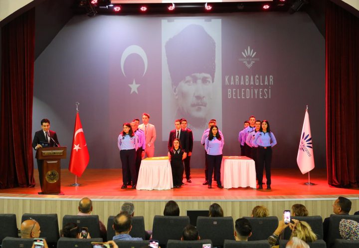 İZMİR (İGFA) – Törende 16 aday memur, masalarda bulunan Türk bayrakları önünde okunan yemin metnini hep bir ağızdan...