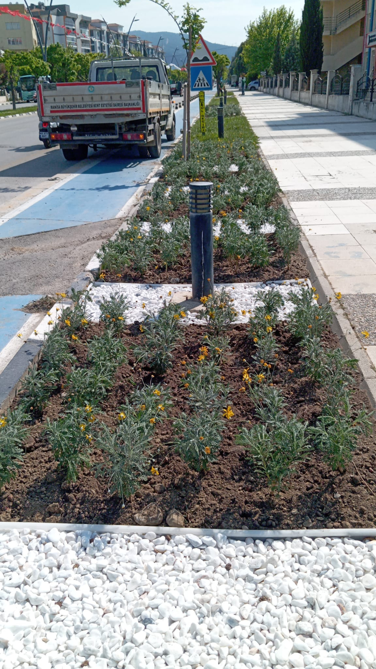 İngolstadt Bulvarı’nda yapılan düzenlemelerle, yıpranan yeşil alanlar yeniden düzenlendi ve dolomit taş kaplamalarla çevrelenen bölgelere LED ayraçlar eklendi. Ayrıca, modern bir peyzaj yaratmak amacıyla yurops bitki türleri kullanıldı, bulvar estetik açıdan daha çekici bir hale geldi. Ahmetli ilçesi ve Fırat Çakıroğlu Kavşağı’nda yapılan çalışmalarda ise eski taşlar yenilendi ve mevsimlik çiçeklerle alanın görselliği arttırıldı. Bu çalışmalar, şehir girişlerinin estetik açıdan daha güzel olmasını sağladı.