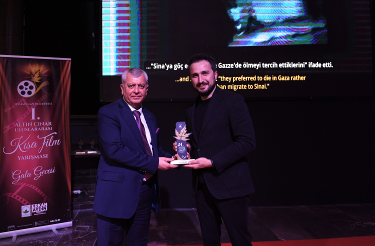 Jüri özel ödülü ‘Özgür Kelimeler Gazzeli Bir Şair’ filmiyle Abdullah Harun İlhan’a verildi. Gecenin onur konuğu olan usta oyuncu Halil Ergün’e ’emek onur’ ödülü takdim edildi. Panorama 1326 Fetih Müzesi’nde düzenlenen 1. Altın Çınar Uluslararası Kısa Film Yarışması’nın ödül törenine Osmangazi Belediye Başkan Yardımcısı Mutlu Esendemir, Gemlik Belediye Başkanı Şükrü Deviren, CHP Osmangazi İlçe Başkanı Raşit Gürbüz, meclis üyeleri ve sanatseverler katıldı. Filistinli Yönetmen Nevres Ebu Salih ve usta oyuncu Halil Ergün, düzenlenen gecenin onur konuğu oldu. Ödül töreninde usta oyuncu Halil Ergün, yoğun ilgi gördü.
