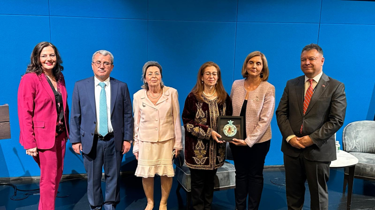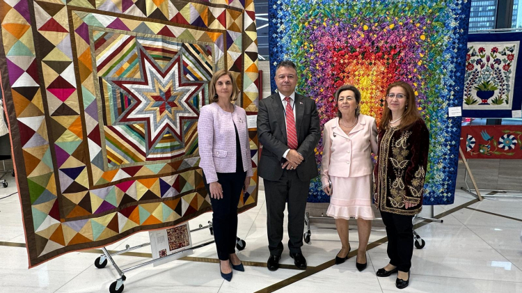 Etkinlik kapsamında BM Daimî Temsilcisi Büyükelçi Ahmet Yıldız’a özel bir patchwork yastık hediye etti.