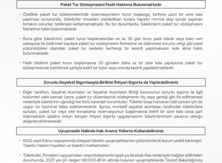 ANKARA (İGFA) – Ticaret Bakanlığı, yaz ve bayram tatili öncesi paket tur ve otel rezervasyonları konusunda tüketicileri...