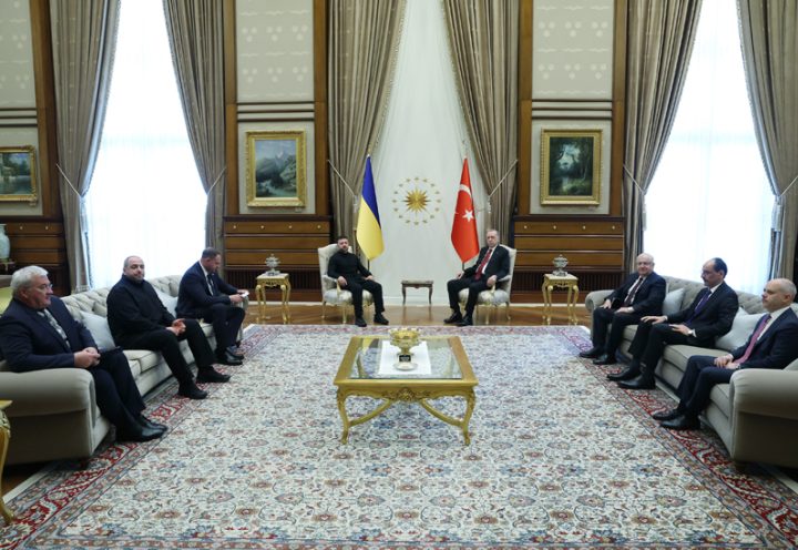 ANKARA (İGFA) – Cumhurbaşkanı Erdoğan, Ukrayna Devlet Başkanı Zelenskiy’i Cumhurbaşkanlığı Külliyesi giriş kapısında karşıladı. Türkiye ve Ukrayna...