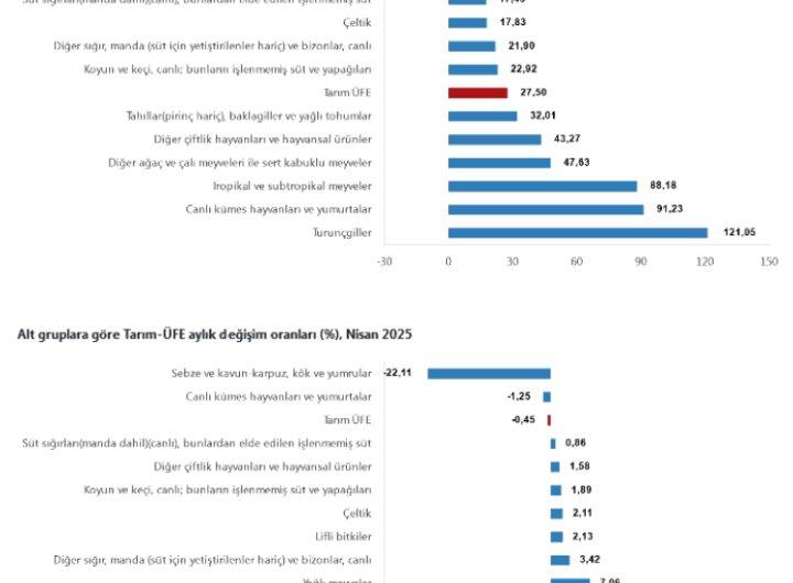 ANKARA (İGFA) – Türkiye İstatistik Kurumu’nun (TÜİK) verilerine göre, Tarım-ÜFE (2020=100) Nisan 2025’te bir önceki aya göre...