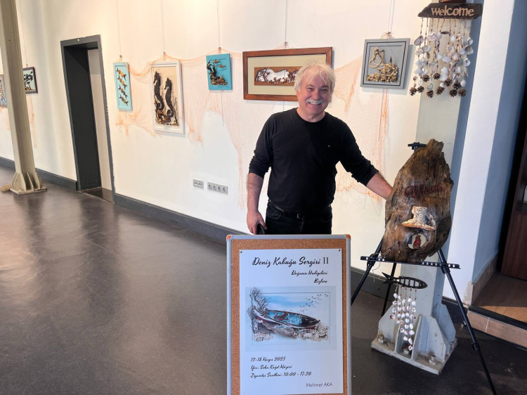 Denizlerin kirletilmesine dikkat çekmek amacıyla hazırlanan sergide, sahillerde bulunan deniz kabuklarının yanı sıra doğadan toplanan kuru ağaç dalları ve geri dönüştürülmüş malzemelerden oluşan çok sayıda özgün eser yer alıyor. Doğal ve atık materyallerin sanata dönüşerek izleyiciyle buluştuğu sergi, sürdürülebilirliğe ve geri dönüşümün önemine de güçlü bir vurgu yapıyor.