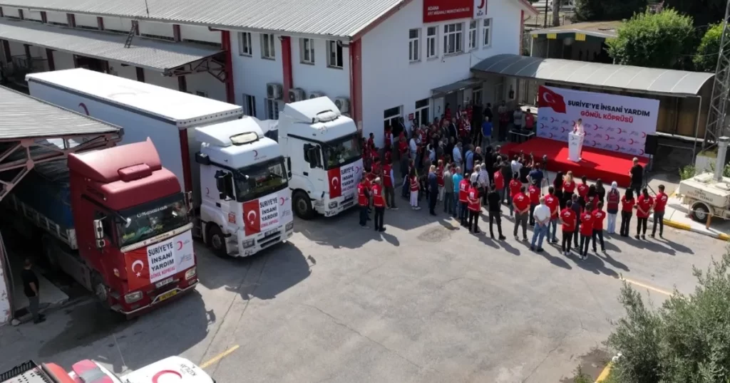 Bugün nasip olursa insani yardım tırlarımızı, hijyen malzemelerimizi, destek bekleyen, sıkıntıları olan Suriye’deki mazlumlara ve mağdurlara, ihtiyaç sahiplerine ulaştırmak üzere yola çıkarıyoruz. Suriye’de uzun süren savaş dönemi sona erdi. Milletimizin, Türkiye’mizin, Kızılay’ımızın merhamet eli sürekli üzerlerinde olacak. Adana Büyükşehir Belediyesi’ne ve katkı sağlayanlara müteşekkiriz. Yardımlarımız çeşitlenerek devam edecek. Amacımız yaraya merhem olmak. Bir yardım yaparken büyüklerimizden öğrendiğimiz gibi renk körüyüz. Mağdur, mazlum ve ihtiyaç sahibi varsa, onların yarasına merhem olmayı şiar edindik.”