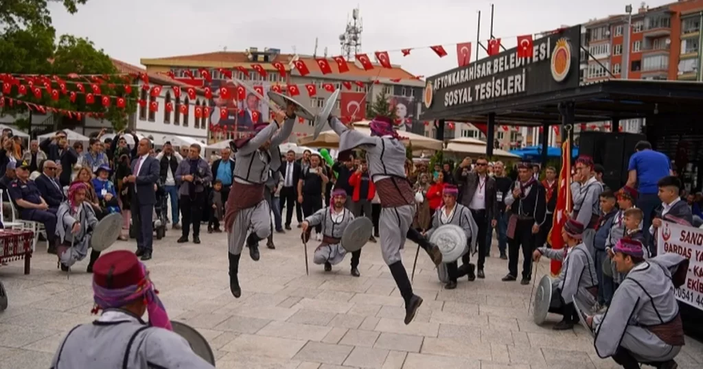 Yaşayan Miras Festivali’nin Zafer Meydanı’nda gerçekleşen açılış töreni, saygı duruşu ve İstiklal Marşı’nın okunmasıyla başladı. Sandıklı Gardaş Yarenler Kültür Derneği Kılıç Kalkan Ekibi gösterisinin ardından açılış konuşmaları gerçekleştirildi.