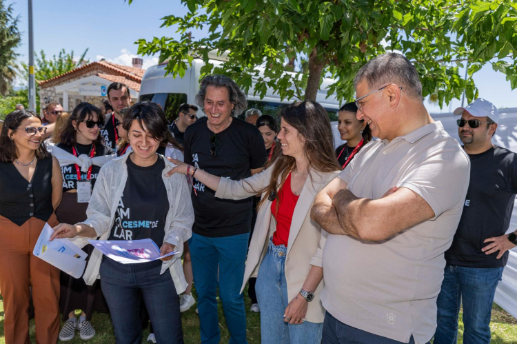 İZMİR (İGFA) – İzmir Büyükşehir Belediye Başkanı Dr. Cemil Tugay, 19 Mayıs Atatürk’ü Anma, Gençlik ve Spor Bayramı kutlamaları kapsamında İzmir Büyükşehir Belediyesi öncülüğünde Çeşme, Karaburun, Seferihisar ve Foça’da yürütülen “Tasarımcılar İzmir’de” etkinliğine katıldı. Mimarlık, şehir planlama, grafik tasarımı, ürün tasarımı, sanat, iletişim ve turizm gibi birçok disiplinden 18-30 yaş arası üniversite öğrencisi ve mezun gençlerin yer aldığı etkinliğin Çeşme etabını ziyaret eden Başkan Dr. Cemil Tugay, Alaçatı’da çalışma yürüten genç tasarımcılarla buluştu. Başkan Tugay’a Çeşme Belediye Başkanı Lâl Denizli, İzmir Planlama Ajansı (İZPA) Başkanı Prof. Dr. Koray Velibeyoğlu, İzmir Büyükşehir Belediyesi ile Çeşme Belediyesi bürokratları eşlik etti.