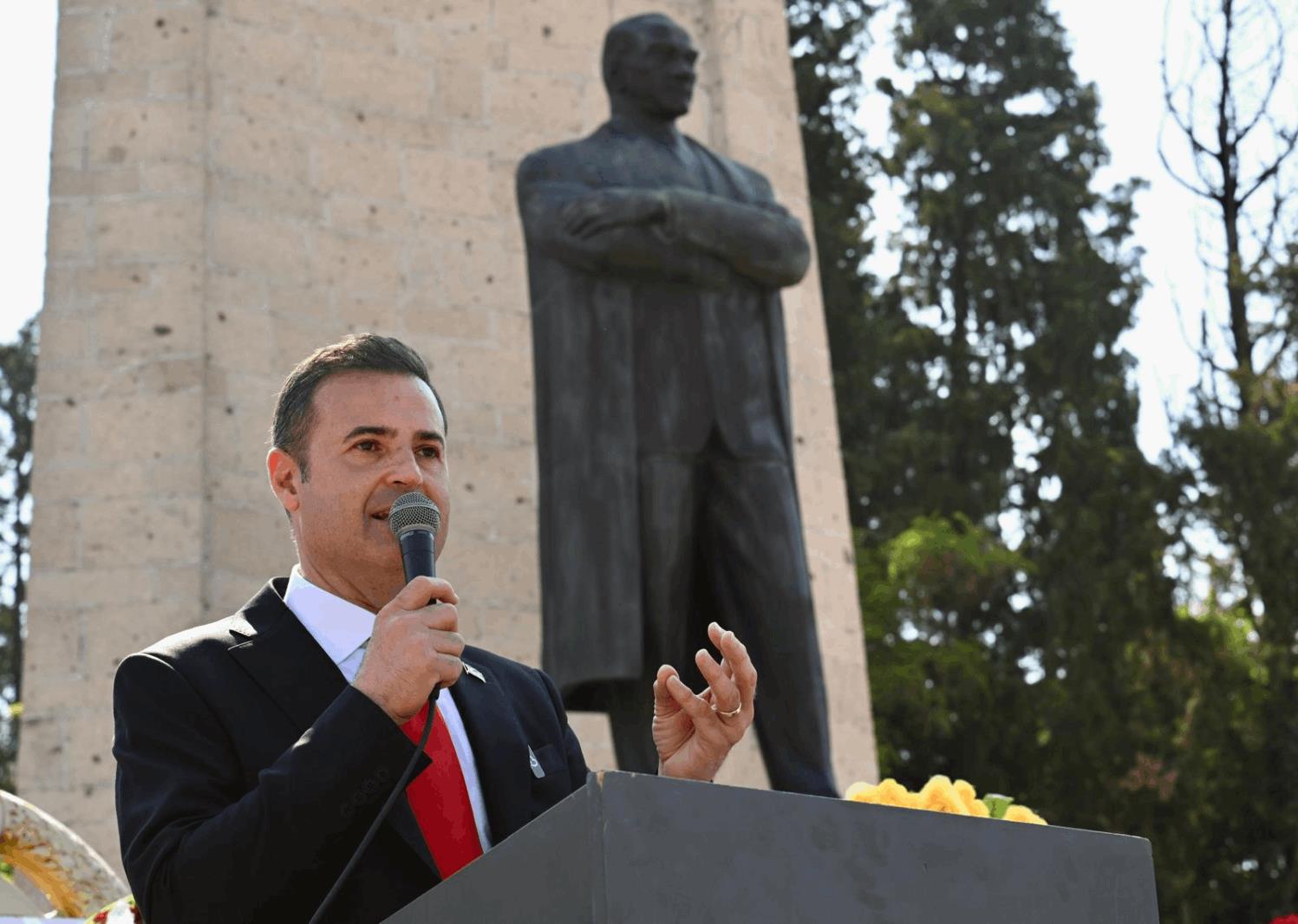 Törende konuşma yapan Balıkesir Büyükşehir Belediye Başkanı Ahmet Akın, “Atatürk’ü anmayı unutmamamız gerekiyor. Onun bize emanet ettiği Cumhuriyet’i daha yukarıya taşımak için el birliğiyle çok çalışmamız gerekiyor. Çünkü bizler Kuvayımilliyeciyiz. Kuvayımilliye demek Mustafa Kemal Atatürk demektir. Bu toprakları bize vatan yapan Ulu Önder Gazi Mustafa Kemal Atatürk başta olmak üzere onun yolundan giden ve toprakları bizlere vatan yapmak için mücadele eden gazilerimizle, can veren şehitlerimizin önünde saygıyla eğiliyorum. Atatürk’ü anmak ve anlamak hepimizin boynunun borcu. Onun için ‘Benim ümidim gençliktedir’ diyen Ulu Önderimiz Gazi Mustafa Kemal Atatürk’ün izinde giden gençlerimiz en büyük emanetçilerimiz. Bize emanet edilen Cumhuriyet’te gençlere emanet. Çünkü emanet kutsaldır.” diye konuştu.