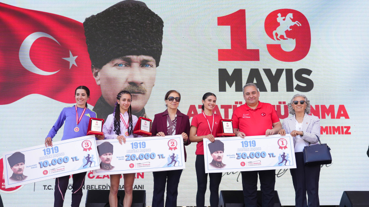 Geleneksel 19 Mayıs coşkusunu yeniden yaşatan koşuda, kadın ve erkek kategorilerinde birinciliği göğüsleyen koşuculara 30 bin, ikincilere 20 bin, üçüncülere 10 bin TL’lik para ödülü verildi.