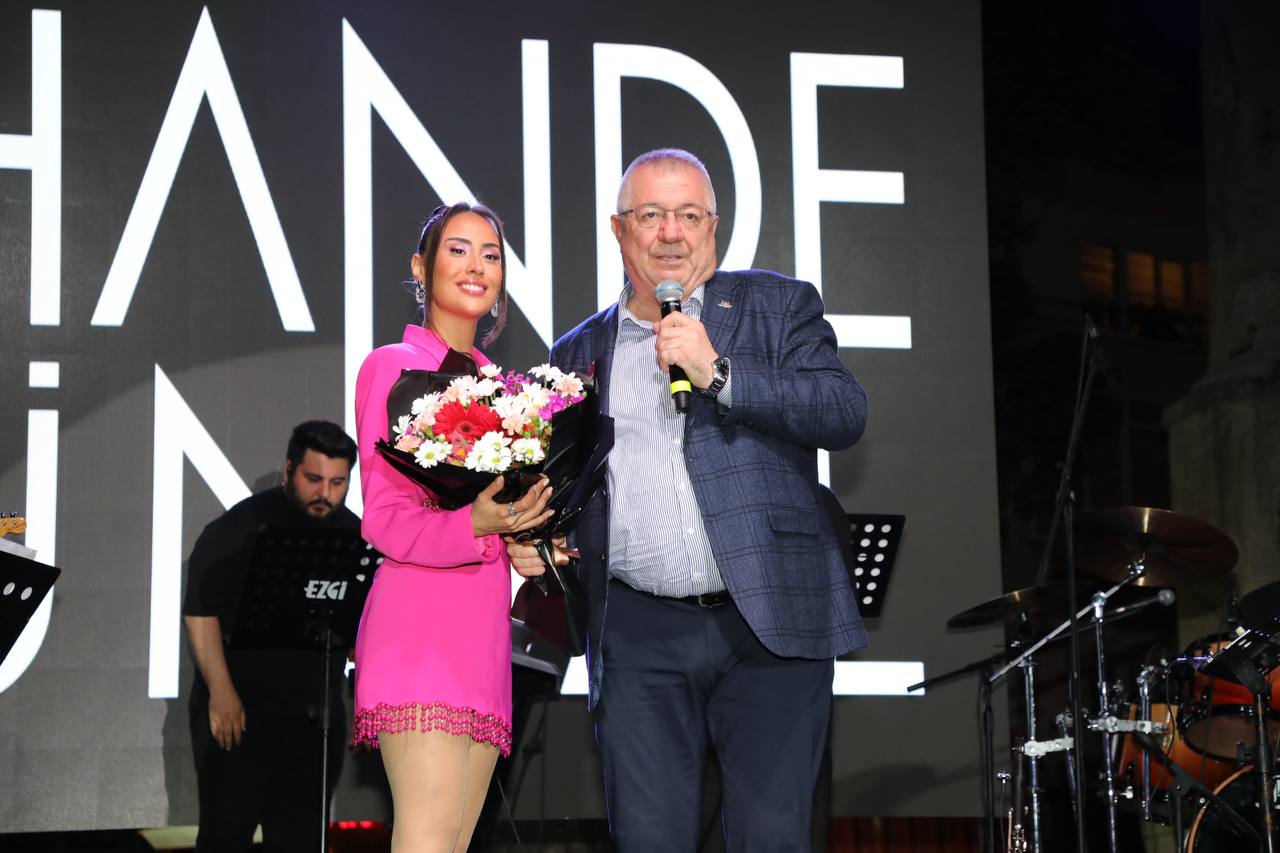 Konuşmanın ardından sahneye çıkan sevilen sanatçı Hande Ünsal, seslendirdiği şarkılarla alanı dolduran binlerce vatandaşa unutulmaz anlar yaşattı. Etkinlik, İzmir Marşı’nın coşkuyla söylenmesi ve Türk bayraklarının dalgalanmasıyla sona erdi.