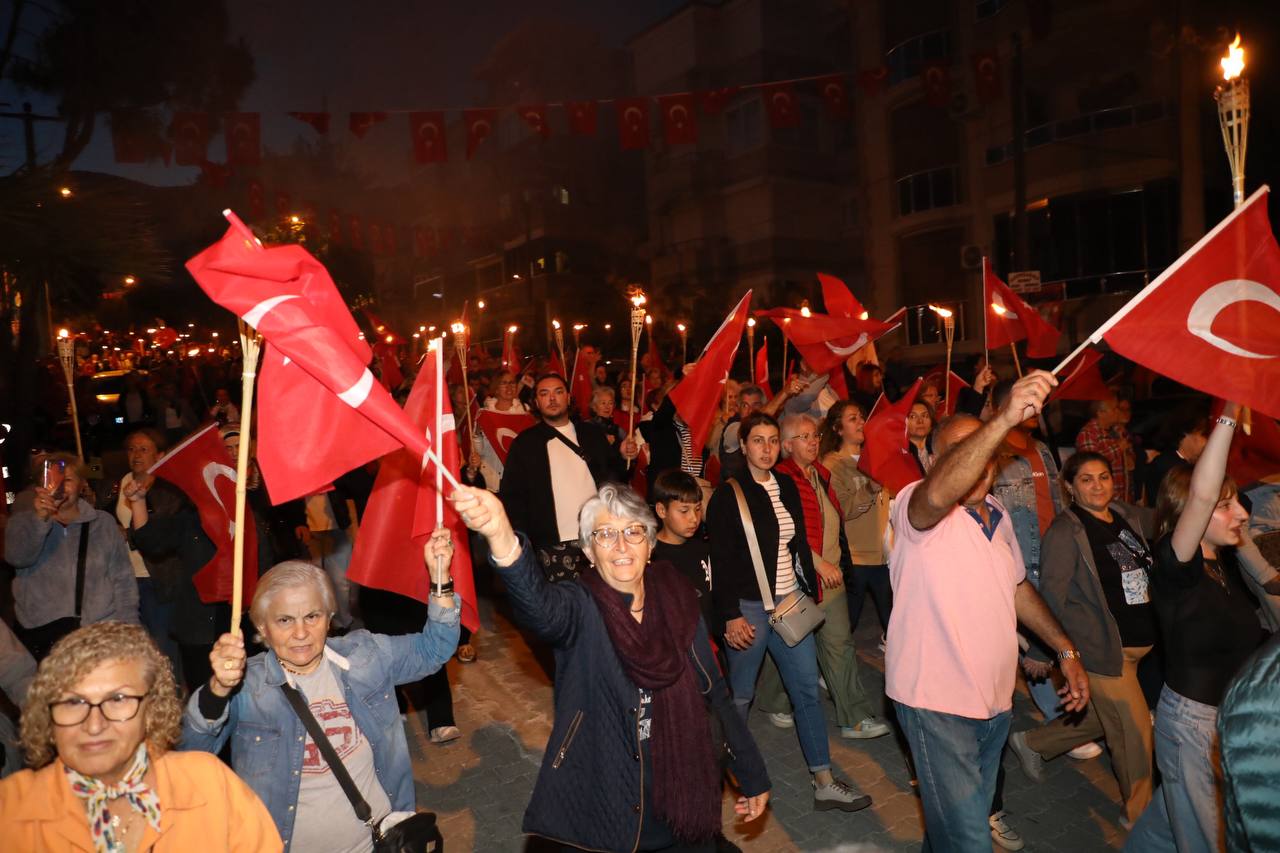 Altınoluk’ta düzenlenen etkinliklerde binlerce vatandaş marşlar ve meşalelerle yürüdü, Hande Ünsal’ın konseriyle bayram coşkusu doruğa çıktı.