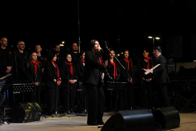 Heykel meydanında yapılan konserde, Şef Rıdvan Sayın yönetimindeki koro performanslarıyla alkış aldı.