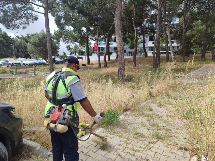 Bu konularda vatandaşlardan da yoğun bir talep aldıklarını belirten Güzelbahçe Belediye Başkanı Mustafa Günay, “Sıcaklar erken başladı, otlar uzadı bu hem kötü bir görüntü oluşturuyor hem de kuruyunca yangın tehlikesini artırıyor. Olumsuz durumu oluşturabilecek özellikle boş alanlarda uzayan ve kuruyan otları ekiplerimiz hızlı bir şekilde temizliyor. Güzelbahçe çok geniş bir ilçe. Şu an 150’ye yakın parkımız bulunmakta. Aktif yeşil alanımız 350 bin metrekarenin üstünde. Bu alalarda daha iyi hizmet vermek için Park Bahçeler ve Fen İşleri Müdürlüklerimiz her gün farklı bir mahallede temizlik yapıyor. Yaz aylarının gelmesiyle havalar ısındı. Güzelbahçe’de parkların dışında, kaldırım, refüj, cadde, bulvar ve boş alanlarda temizlik yapıyoruz. Özellikle vatandaşlarımızdan bu noktada çok talep gelmekte. Evlerinin yanında boş arsalar olduğunu ve otların insan boyunu aştığını, yabani hayvanların da evlere girdiği söyleyerek biçilmesini talep ediyorlar. Bu taleplere yetişmeye çalışıyoruz. Güzelbahçe geniş bir alana sahip. O yüzden ekiplerimize takviye olarak diğer müdürlüklerden de personel ilave ederek hafta sonları da bu temizliğe devam ediyoruz. İşleri yetiştirmek için geçici işçide alıyoruz. Yangınlar geçtiğimiz yıllarda canımızı çok yaktı. Yüksek sıcaklar kurumuş otlar için büyük tehlike arz ediyor, bunlar kurumudan bir an önce temizlenmesi gerekiyor.” diye konuştu.