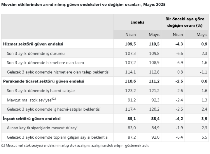 ANKARA (İGFA) – TÜİK’in Mayıs 2025 verilerine göre, mevsim etkilerinden arındırılmış güven endeksleri bir önceki aya kıyasla...