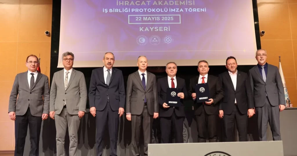 Erciyes Üniversitesi ve İhracat Akademisi Eğitim Hizmetleri Anonim Şirketi arasında, Ticaret Bakanlığı ile Yükseköğrenim Kurulu koordinasyonunda hayata geçirilen “İhracat Akademisi” Projesi kapsamında iş birliği protokolü Kayseri Ticaret Odası’nda imzalandı.