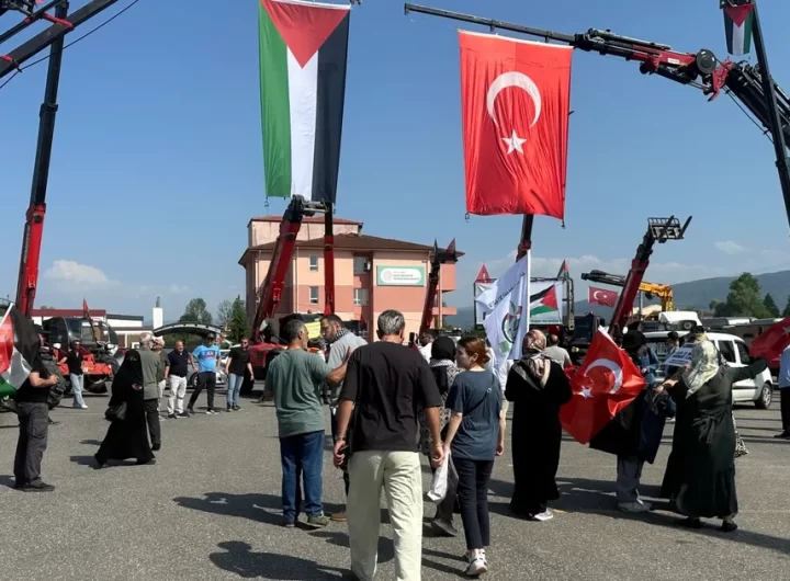 HABER ÖZEL TV DÜZCE (İGFA) – Vinç firmaları ve bazı sivil toplum örgütlerinin desteğiyle yapılan konvoyda, Türk...
