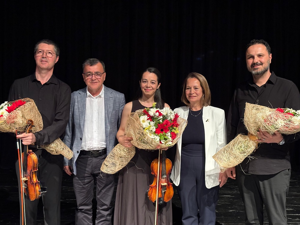 Hasan Can Kültür Merkezi’nde düzenlenen etkinlikte Piyano virtüözü Özgür Agansoy’un etkileyici performansı, keman sanatçısı Kenan Karaman’ın performansıyla birleşti. Gecenin en dikkat çeken anlarından biri ise Altıeylül Belediye Başkanı Hakan Şehirli ve Hüveyla Şehirli’nin kıymetli kızları Avukat Hande Şehirli Gezgin’in sahne alması oldu. Yıllar sonra kendisine keman çalmayı öğreten hocası Kenan Karaman ile aynı sahneyi paylaşma fırsatı bulan Avukat Hande Şehirli Gezgin, izleyicilere duygusal anlar yaşattı. Sanatçılar gecede hem solo eserlerle hem de orkestra halinde repertuvarlarını sergilerken, dinleyicileri klasik müziğin büyülü atmosferine taşıdı. Keman ve piyanonun mükemmel uyumu, salonda bulunan müzikseverlerden büyük alkış aldı.
