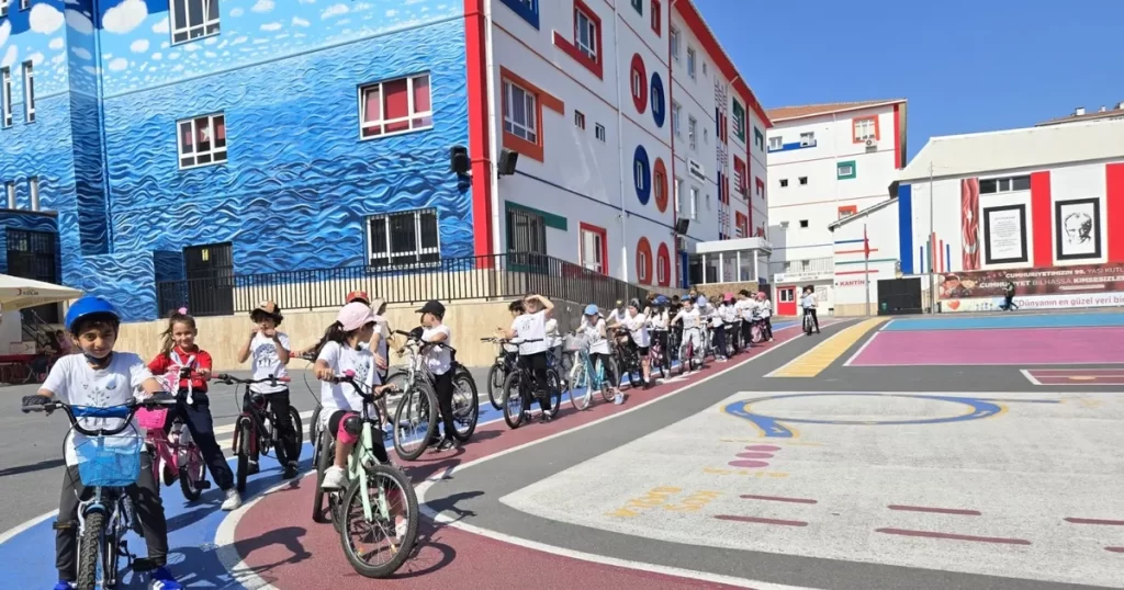 Beylikdüzü Büyükşehir İlkokulu’nda 8 yıldan bu yana uygulanan “Pedala İlk Adım” projesi, ilköğretim çağındaki çocuklara temel bisiklet eğitimi vererek fiziksel gelişimlerine katkı sağlarken, bisiklet kültürünü küçük yaşlarda kazandırmayı amaçlıyor. Öğrencilerin motor becerilerini geliştirmek, çevre bilincini artırmak ve ulaşım alışkanlıklarını dönüştürmek hedefiyle bisikleti bir eğitim aracı olarak konumlandırıyor. Bu vizyon doğrultusunda okul, bisiklet derslerine, atölye alanlarına ve eğitici iş birliklerine yatırım yaparak öğrencilerine sürdürülebilir bir yaşam biçimi sunmayı hedefliyor. Öğrenciler, “Bisikletim ve Ben” eğitimi kapsamında okul bahçesindeki bisiklet parkurunda bisiklet dersini yapıyor.
