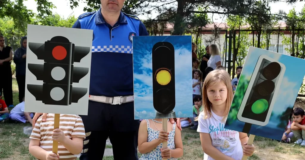 Etkinlikte, anaokulu öğrencilerine trafik kuralları hatırlatılarak farkındalık oluşturuldu.