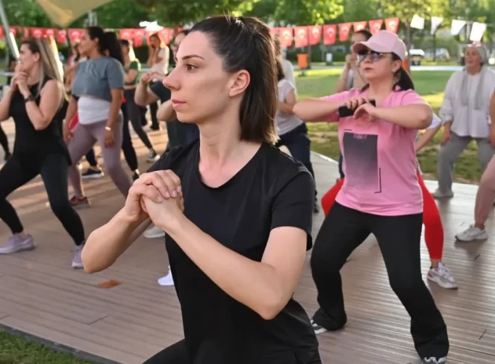 MANİSA (İGFA) – Manisa Büyükşehir Belediyesi Sanat ve Mesleki Eğitim Kursları (MASMEK) Zumba Eğitmeni Merve Yılmaz eşliğinde...