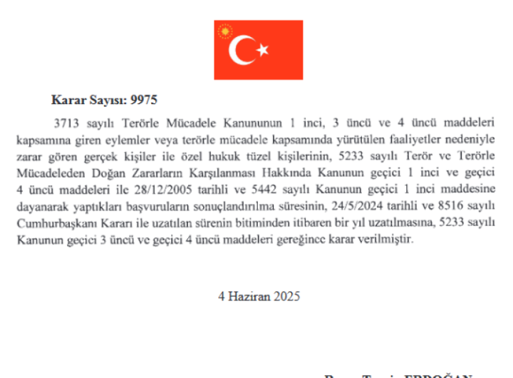 ANKARA (İGFA) – Bugünkü Resmi Gazete’de yayımlanan 9975 sayılı Cumhurbaşkanı Kararı, 3713 sayılı Terörle Mücadele Kanunu’nun 1,...
