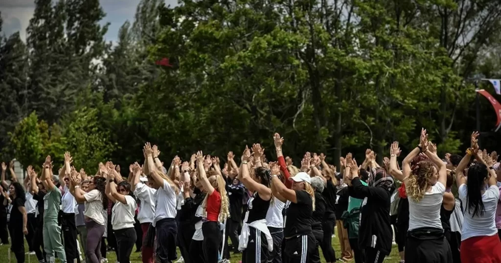 Atatürk Çocukları ve Doğal Yaşam Parkı Konser Alanı’nda gerçekleşen büyük buluşmada, 500’ün üzerinde kadın aynı anda müzik eşliğinde aerobik yaparak Guinness Dünya Rekoru’na girmeyi hedefledi.