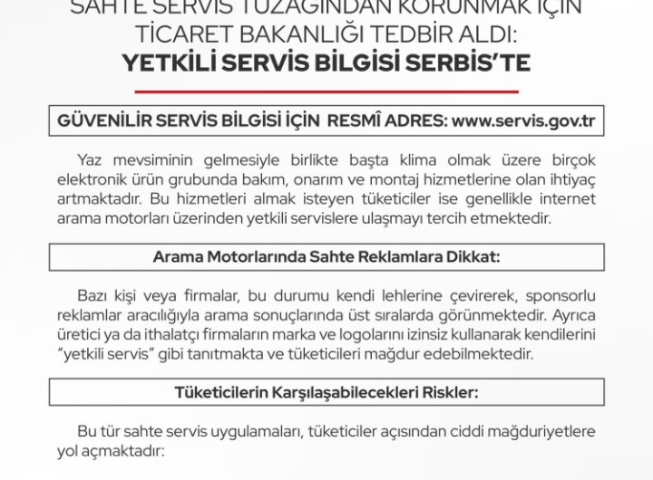 ANKARA (İGFA) – Ticaret Bakanlığı, sahte yetkili servislerin tüketicileri aldatmasını engellemek amacıyla önemli bir adım attı. Bakanlık,...