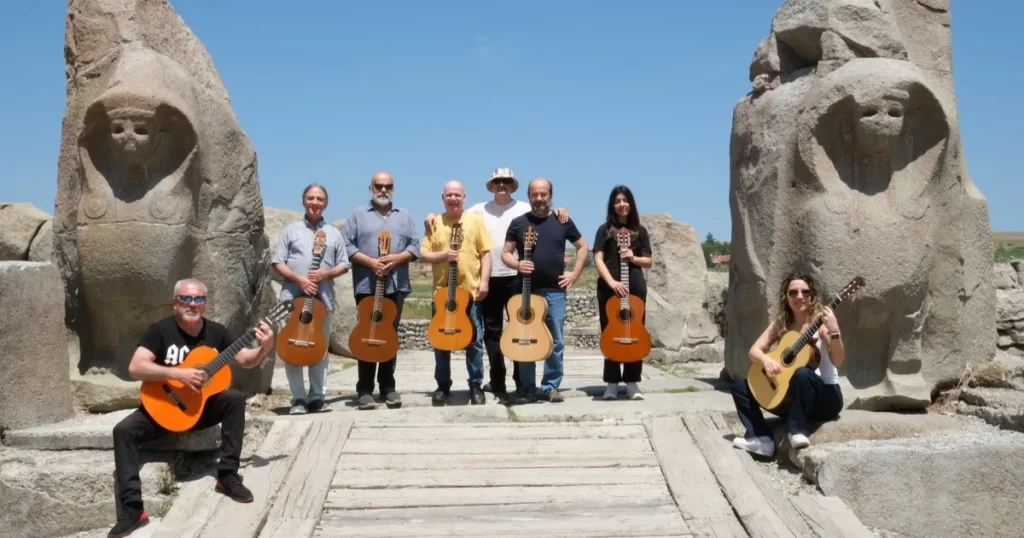 ÇORUM (İGFA) – Çorum Belediyesi’nin ev sahipliğinde düzenlenen “Gitar Anavatanında” konseri kapsamında şehre gelen yerli ve yabancı gitar sanatçıları, Hitit Medeniyeti’nin izlerini taşıyan Hattuşa, Boğazkale ve Alacahöyük Örenyeri’ni ziyaret etti. Sanatçılar, müziğin ve tarihin iç içe geçtiği bu özel gezide kadim uygarlığın izlerini yerinde görme fırsatı buldu.