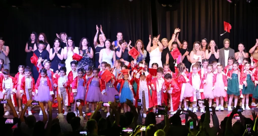İstiklal Marşı’nı hep bir ağızdan söyleyen minikler, ardından büyük bir heyecanla hazırlandıkları gösterilerini sahneledi. Dans, drama ve jimnastik alanındaki performanslarıyla büyük beğeni toplayan çocuklar, izleyenlere keyifli bir akşam yaşattı. Aileler de çocuklarının ilk diplomasına kavuştuğu bu özel gecede sevinç ve gururu bir arada yaşadı. Törenin finalinde ise coşku doruğa ulaştı. 10. Yıl Marşı ve Parla – 100. Yıl Marşı eşliğinde keplerini havaya atan Nar Çiçekleri Anaokulları’nın minik mezunları, gecenin coşkusunu aileleriyle birlikte paylaştı.